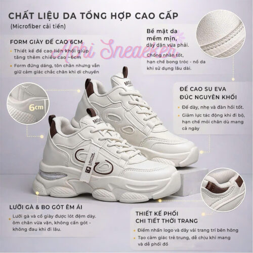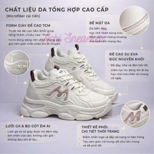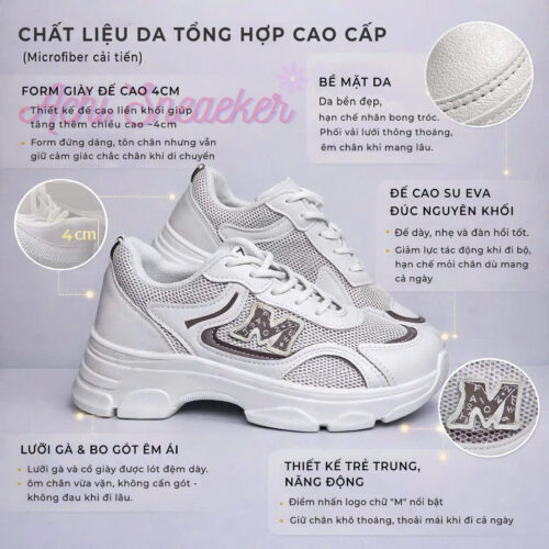 Giày Thể Thao Nữ Tăng Chiều Cao 4cm M-AIR – Sneaker Nữ Hack Dáng Cao, Độn Đế Nhẹ Êm, Lưới Thoáng Khí